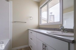 Completely MOVE IN READY, freshly reno'd (*quality, not just a flip) half Duplex in Spruce Grove! NEW floors, paint, trim, FULLY NEW Bathrooms (cabinets, sink, toilet, bath/shower)NEW shingles, (2019) FURNACE, (2017) HWT...essentially everything! 3 Beds - 1.5 baths, partially finished basement gives you something to work on and build a little equity! Rooms already done, electrical done..just needs Aesthetic love! Kitchen opens to dining room and also has main floor laundry! Big open living room w huge north facing windows! Backyard freshly landscaped w new sod and sidewalk blocks. Live 1 Min from Daycare, 3 mins from woodhaven and brookwood school, and 5 min walk from the BRAND NEW Central Park/skate park! Ducts and furnace will be professionally cleaned at seller's cost before possession. **Stairs will be completed in one week. Full family home, or just a really smart decision for a new buyer to grab something w IMMEDIATE POSSESSION, enjoy living in it, and watch it grow in value!