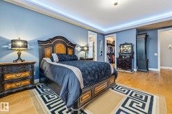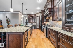Experience unmatched luxury in this executive custom-built walkout bungalow in Kingswood. With over 4,440 sq ft of living space, this home offers 10 ft ceilings, travertine tile, scraped hardwood, coffered detailing and a full stone fireplace that anchors the main living area. The chef’s kitchen features JennAir appliances, granite counters, a huge island, custom cabinetry, walk-through pantry that leads to an oversized mudroom with custom lockers and den on the main. The private primary suite includes a large walk-in closet and a spa-inspired ensuite with heated floors, dual sinks, jetted tub and a walk-in double steam shower. The walkout basement is built for entertaining with heated floors, wet bar, 4 large bedrooms, two full baths, a spacious laundry room and a temperature-controlled walk-in wine cellar. Outside, enjoy a low maintenance landscaped yard with privacy trees, stone patio, composite deck. A heated oversized garage with a lift accommodates 3 indoor stalls. An exceptional Kingswood home.