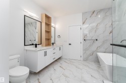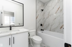 Welcome to this spacious 2,649 sq. ft. two-storey home in the heart of The Fairways in Stony Plain. The main floor features a cozy living room with a fireplace, a bright dining area with access to the deck and backyard, a functional kitchen with walk-in pantry, a bedroom and a convenient 4-pc bathroom—perfect for everyday living and entertaining. Upstairs, you'll find a large family room, a luxurious primary bedroom complete with a 5-pc ensuite and walk-in closet and three additional bedrooms. One of the bedrooms includes its own 4-pc ensuite, while the others share a 3-pc bathroom. A dedicated laundry room adds extra convenience on the upper level. The unfinished basement is a blank canvas—ready for your personal touch or future finishing projects. This home also offers a triple attached garage, providing plenty of space for vehicles and storage. Ideal for families looking for space, comfort, and a great location!