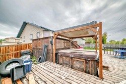 NEW ROOF, SIDING, EAVESTROUGH. AIR CONDITIONED. Great Corner Lot. Lots of Off-Street Parking. Cul-de-sac Location. Property is Expansive Not Expensive. Potential Plus. Central Air Conditioned.5 Bedrooms. 3 Bathrooms. 2 Laundry Areas Up/Down. Fully Developed. Fenced Yard. Pet Friendly. Hot Tub. Cement Pad in Backyard. Great for Basketball. Upper Deck 20 x 9. Lower Deck 28x18. Gas hook-up for the Barbeque. Covered Porch 16X5. Enjoy the Outdoor Space. South Backyard. Great Home for 2 families. Come See.
