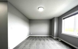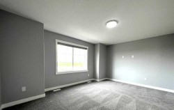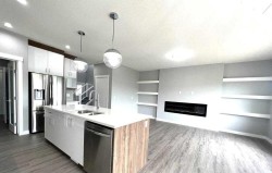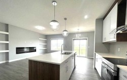 Welcome to this beautifully designed 3-bedroom, 2.5-bathroom home—perfect for families or anyone seeking space, style, and comfort. With a striking open-to-below layout and soaring ceilings, the home offers a bright, airy ambiance that’s sure to impress. Contemporary upgraded lighting enhances the elegance throughout. The main floor features a spacious mudroom, a convenient 2-piece bath, and a large open-concept living area complete with an electric fireplace. The dining area flows seamlessly into a gourmet chef’s kitchen, boasting high-end stainless steel appliances, quartz countertops, a walk-through pantry, and a sleek, modern design. Upstairs, you’ll find a cozy family room, a full 4-piece bathroom, laundry room, and three generously sized bedrooms—including a luxurious primary suite with a massive walk-in closet and a spa-inspired ensuite featuring a soaker tub, glass-enclosed shower, and double vanity. Enjoy the outdoors in your private backyard, perfect for kids or pets, with direct access to the green space behind. This home backs onto a field shared with a K-9 Elementary School and a nearby Sports & Recreation Centre—ideal for active families. Additional features include a DOUBLE attached garage, stainless steel kitchen appliances, and a washer & dryer included for your convenience. Don’t miss your opportunity to own this exceptional property!