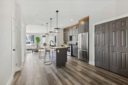 This Sundre villa offers a serene escape from urban life, surrounded by lush greenery and picturesque mountains. Situated in the heart of Sundre's vibrant community, Prairie Creek Crossing beckons with its promise of tranquil living for adults seeking a retreat or retirement haven. Step inside to discover a modern oasis designed for comfort and convenience. The open floor plan welcomes you with vaulted ceilings, creating an airy ambiance throughout. The kitchen is a chef's delight, with ample counter space, and a spacious pantry for all your culinary needs. Entertaining is effortless as the dining area seamlessly transitions into the inviting living room, providing the perfect setting for family gatherings and socializing. Retreat to the master bedroom, featuring a walk-through closet leading to a private 4-piece ensuite, offering a sanctuary of relaxation. The second bedroom can be used for visiting guest or the much needed office! Designed for ease of living, this single-floor layout eliminates the hassle of stairs, catering to adults looking to downsize without compromising on comfort. A double attached heated garage provides convenient parking for two vehicles, ensuring both practicality and security. Experience year-round comfort with in-floor heating throughout the home and garage, while exterior landscaping and snow removal are meticulously taken care of. Embrace the joys of pet ownership as Prairie Creek Crossing welcomes furry companions with board approval, allowing you to share your new home with your beloved pets. Beyond the doorstep, Sundre offers an array of recreational opportunities for outdoor enthusiasts, including hiking, fishing, camping, and trail riding amidst breathtaking natural landscapes. Indulge in quality golf courses or unwind at the local hospital, seniors club, or indoor recreational centre with an indoor pool and fitness facilities. Don't wait to embrace the retirement lifestyle you've dreamed of—seize the opportunity to live amidst Sundre's beauty and tranquility at Prairie Creek Crossing. More Pictures to follow, Just at finishing Stage! Please note we Have 5 units and you are welcome to view them all!