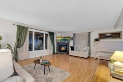 Welcome to this spacious 4-bedroom bungalow nestled in a mature neighbourhood near schools, parks, and shopping. The HUGE front porch with a beautiful ornate wooden door invites you into a warm and welcoming home. Inside, you’ll find a large living room with a cozy corner gas fireplace and a big front window that fills the space with natural light. The home comes complete with a beautiful piano - perfect for music lovers and families! The dining area opens to a fully enclosed sunroom to enjoy the added living space, perfect for morning coffee or relaxing in the evening with access to a private back deck—perfect for relaxing or entertaining. The kitchen is generous in size and features a lowered eating bar, ideal for casual dining or family gatherings. The primary bedroom easily fits a king bed and furniture, with a cheater door to the main floor bath that includes a corner jetted tub. A second well appointed sizeable bedroom with an amazing closet system! The fully finished basement offers a separate entrance, providing great potential for extended family or guests! Featuring brand new laminate flooring, making it a perfect space for the family to unwind or play games. There are 2 additional bedrooms, a 3 pc bathroom, a large laundry area and plenty of storage. Outside, enjoy a fully fenced yard on a huge corner lot, beautifully landscaped with perennials, mature trees, an apple tree, and Saskatoon bushes. A dream for hobbyists or anyone needing extra space, the heated 32x28 garage/shop is a standout feature. This property offers comfort, character, and excellent value in a prime location!