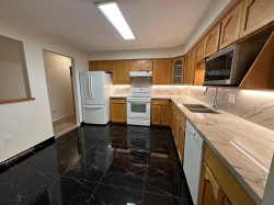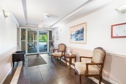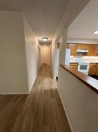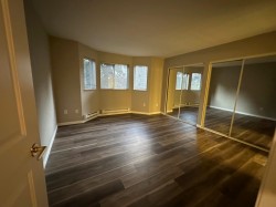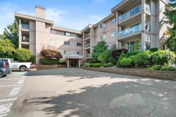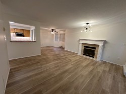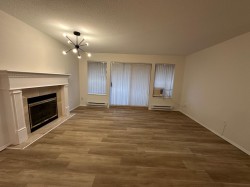 55+ Building - Welcome to Tiffany Park! This corner unit, situated on the quiet side of the building, offers a peaceful and comfortable living experience. Located on the first floor, this suite boasts a bright and open plan with abundant windows, allowing natural light to flood in. Gas fireplace. Recent updates: new flooring, bathroom cabinets, paint. Convenient location, close to everything with easy transit access. Strata fees include gas, electricity, heat, hot water. Vacant Easy to show.