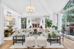 An extraordinary end-unit townhome in sought after Rosehill Estates, this fully renovated executive residence blends timeless sophistication with modern comfort. Sunlit interiors—enhanced by expansive windows, 3 skylights & refined colour palettes—vaulted ceilings, hickory floors, couture lighting, crown mouldings & custom millwork to name a few. The gourmet kitchen boasts high-end appliances, soft-touch cabinetry, wall-mounted ovens & an elegant enclosed deck. A glass-railed staircase, beautifully renovated bathrooms, electric blinds, generous storage, sliding doors to the lush yard, & parking for 4 complete this impeccable, magazine-worthy home. This won’t last long. Truly superb! Viewings only by appt.