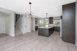This brand new home located in a quiet established neighbourhood close to a park and schools. 9 ft ceilings throughout all 3 levels and 4 bedrooms. Open floor plan on the main, includes large kitchen w/island and seating area, all main floor kitchen appliances, hard surface counter tops thru out main, dining area and living room complete with floor to ceiling stone gas fireplace. Home has front sun deck with glass railing and a covered rear patio, rough ins for BBQ and AC. Upper floor has 3 large bedrooms with a 3 piece bath for the kids. Master bedroom is complete with walk in closet and ensuite includes two sink and amazing large tile shower. Basement contains 1 bdrm suite complete with laundry. Fully fenced and landscaped.
