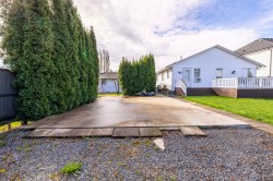 Welcome to this incredible 1363 sqft 2 bedroom 2 bathroom rancher with everything done but to move in. Recent renovations include a new kitchen, new flooring, new paint, and new bathroom vanities. A beautifully laid out family room and dining room with cozy gas fireplace, flow into the spacious and bright renovated kitchen. Entertain on your expansive and recently built 34ft deck in your sun filled private oasis back yard. Rear lane access with a 20' x 30' concrete pad already poured for RV parking, a shop or secondary dwelling. Perfect for downsizers not wanting the stress of strata ownership, a hobbyist or a young family looking to put down roots in an incredible community. Don't miss this one!