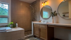 Located at the end of a quiet road, you will instantly feel one w/nature. This unique property offers 3 bedrooms upstairs in main living area & 2 suites downstairs that can connect to main house offering potential for investment suites. The house features beautiful details w/expansive indoor and outdoor areas with stunning south views of Killarney Lake throughout. Walk down some steps to arrive at the forest spa w/two outdoor tubs and Scandinavian style sauna. Keep going down steps to arrive at the 791sqft 1-bedroom cabin w/full kitchen, fireplace, bathroom, outdoor patio & veggie garden ready to harvest for meal time. Head for a swim in the lake via your private trail leading directly to Killarney Loop. This home must be seen to capture the quality of detail throughout.
