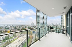 BEAUTIFUL & SPACIOUS 2 BEDROOMS CORNER UNIT AT KINGSCROSSING 3 BY CRESSY. Southeast facing with panoramic mountains, water, and city view. Huge covered balcony is perfect for spacious outdoor day to day living or entertaining! Bright and spacious layout with ton of natural light huge windows. Open concept floorplan with 9'ft ceiling, A/C, spacious bedrooms, and spa like bathrooms. Feature Cressy Kitchen includes custom feeling cabinetry with the most intelligent use of storage space, European appliances, and exquisite stone countertops. Amenities include sports court, fitness center, sauna/steam room, rooftop garden, lounge and concierge. Convenient to Highgate Shopping Center, Edmonds Community Centre, skytrain, shops & restaurants. Minutes driving to Metrotown, Deer Lake and Schools.