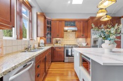 Discover a luxury Residence located in North Bby's Finest Neigbourhood THE HEIGHTS! This One-of-a-Kind Home was European Built w/ the Extensive use of Solid Cherry Wood Floors + Fir Milwork Finishing. Magnificent Foyer w/ Expansive Floor Plan offers Executive Living with a Formal Dining Room adjacent to a Chef Inspired Kitchen + Family Room perfect for Entertaining. Above feat's 2 Large Beds w/ a Jack-n-Jill Bath + Stunning Primary Bedroom adorned w/ a Massive Hotel Style Ensuite w/ a Luxurious Soaker Tub, Walk-in Closet & Fireplace! Below has a Lg 1 Bed, Bath & Den Studio Suite w/Sep Entry + Office nook & Flex Space. Step out to your Fully Fenced Yard, Private Patio, Built-in BBQ + 2-way Fireplace & Double Detached Garage w/ Lane Access! Steps to Shops, Cafes & Schools. Call to View!