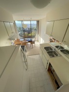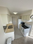 Bright south and East facing corner suite with floor to ceiling windows to enjoy the panoramic view, and large decks. Well built (concrete) well maintained and regularly upgraded with renovated elevators and renovated decks. Waterlines replaced throughout. Common areas recently newly carpeted throughout. #306 has just been redecorated including new carpet throughout. Hot water included. Modern cooker and fridge. Rooms are large. Shops and transportation services are right there! Full sized storage locker and large parking stall close to the entrance. Parking on site. View by appointment at your convenience. Text best