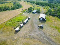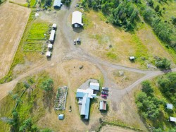 Discover this rare 730-acre ranch on 5 separate titles, offering approximately 350 acres in hay (as per seller), all fenced and partially cross-fenced for easy management. A rancher's dream setup includes a 3,200 sq. ft. shop with 16-foot walls, a 3,000 sq. ft. barn, and multiple additional outbuildings. The property's custom infrastructure-previously used for cattle and emu-remains in place, giving you versatile options for your agricultural vision. The spacious 4-5 bedroom rancher-style home spans 2,800 sq. ft., offering comfort in a truly spectacular setting. A water license provides for both domestic and irrigation needs. Opportunities like this are rare-seize the chance to own a legacy property with unmatched potential and breathtaking views.