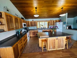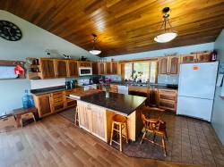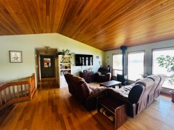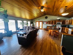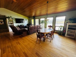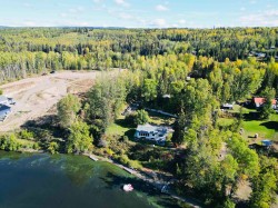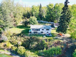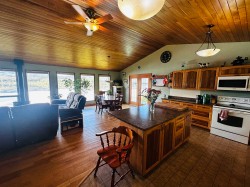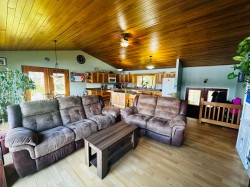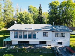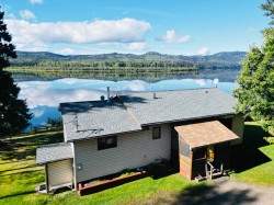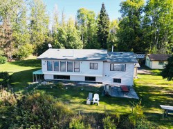 Lakefront home on just under one acre with stunning views and a private setting, only minutes from town. Well-maintained with 3-4 bedrooms, 2 bathrooms, and flexible living spaces. Main level offers vaulted ceilings, a large kitchen, 3 bedrooms, and lake views throughout. Walk-out basement includes a second kitchen, full bath, and potential 4th bedroom - ideal for guests, in-law suite, or rental income. Updates include a new roof, new hot water tank and new water pump in the lake. Detached two-car garage provides parking and storage. Enjoy year-round lakefront living with convenience and privacy.
