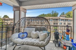 Welcome to The Vibe! Great for Investors or first-time buyers. This 2-bedroom Open concept design. Kitchen features dark rich cabinets with a large breakfast bar. The good-sized master bedroom has a walk-in closet and a cheater ensuite. Ins uite laundry, 1 parking stall and storage locker. Close to Cottonwood Mall, restaurants and 1/2 a block to public transit. The unit is on the quiet side of the building.