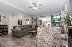 Welcome to this charming home on full crawl in the welcoming gated community of Country Park Village. This vibrant community offers RV storage, a clubhouse with a 2bed suite. 3 pets allw'd with NO SIZE RESTRICTIONS ON DOGS! Inside you'll love the modern touches: new windows, Silestone counters, HW on demand, AC, laminate flooring and updated lighting. The enclosed sunroom/hobby room is ideal for a cozy hot tub spa retreat, or additional entertaining space. Step outside to a fully fenced back yard featuring young cedars and plenty of space for your vegetable or flower gardens. Back gate opens up to a cul-de-sac for ease of dog walking. From the front windows take in breathtaking mountain views that never get old. 45+ Age Restricted.