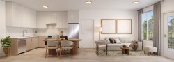 Welcome to Ravir, in the heart of historic Maillardville. Inspired by the area's French heritage, these condos and townhomes blend modern style with everyday comfort. Bright layouts feature spacious bedrooms-most with walk-in closets-large windows, quartz countertops, laminate flooring and LG stainless steel appliances. Amenities include a gym, social lounge with workspace and outdoor patio. Located across from Mackin Park, Ravir offers easy access to shopping, dining and recreation. With nearby transit, commuting to downtown Vancouver or the Fraser Valley is convenient. $6,000. upgrade for A/C included.