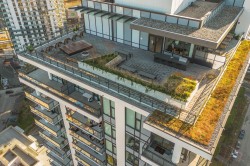 Beautifully updated 2 BED & DEN at the Alina in Coquitlam, offering an ideal location and stunning VIEWS. Professionally upgraded by A2H Design, it’s the ONLY suite with premium upgrades incl. designer lighting. Floor-to-ceiling windows frame unobstructed VIEWS of City and Mountains. The kitchen features mid-century inspired cabinetry, SS appliances incl. gas range. Enjoy a covered 220 SF wrap-around deck, split BED layout for privacy, and a DEN that can serve as a 3rd BED or office. The ensuite showcases a walk-in glass shower and modern finishes. Includes 2 Parking, Storage, access to a 6-level parkade, bike storage, EV charging, pool & hot tub. Steps to SkyTrain, shops, dining, parks and trails. BONUS: Furniture can be included with sale. Shown by appointment.