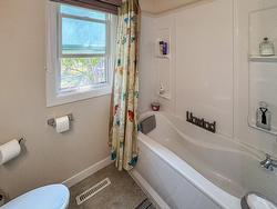 Situated just on the edge of the city limits with stunning mountain views, this rare 0.26-acre property offers the perfect blend of space, comfort, and convenience. The 1,420 sq. ft. bungalow has been thoughtfully maintained and upgraded, featuring three spacious bedrooms or 2 + den, two beautifully updated bathrooms, and the added convenience of main floor laundry with front-loading machines. The bright kitchen and dining area flow seamlessly in an open floor plan, while the living room showcases hardwood floors and a charming wood brick fireplace as a cozy focal point. A side enclosed porch leads to a partial basement, providing abundant storage and direct access to both the single carport and the backyard. Practical updates include a high-efficiency furnace installed in 2022, new electrical service, a hot water heater replaced in 2018, and updated vinyl windows completed in 2010/11. Connected to city sewer just three years ago and supplied with city water, this home is move-in ready. The beautifully landscaped yard is complete with a gazebo, garden beds, and generous RV parking, making it a true gem for those seeking both lifestyle and location.