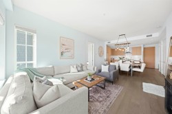 Discover unparalleled luxury in Ladner's premier waterfront enclave,Pilot House.This 2 bed/2 bath 1193 sq ft floorplan is an entertainer's dream,showcasing a stunning kitchen,soaring ceilings & an abundance of southern light that fills the space daily.The chef-inspired open kitchen anchors the home,featuring pro-grade SS appl,premium cab& oversized island that flows seamlessly into expansive living & dining spaces finished w/ luxury hw flooring. Bdrms are thoughtfully placed at opp. ends,each a generous retreat w/WIC. Primary bath w/ soaker tub, double sink+ shower. Modern comforts incl A/C, in-suite ldry, storage & sec prkg. Resort-style amens elevate daily life: outdoor pool, hot tub, elegant lounge, guest ste & sport crt. Steps to scenic trails, Captain's Cove Marina, dining & schools.