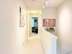 This rare 2-bedroom townhome offers the space and flexibility of a 3-bedroom layout, with nearly 1,400 sq.ft. of thoughtfully designed living space. The open-concept main floor is ideal for entertaining, featuring a large island kitchen with Caesarstone countertops, stainless steel appliances, double sinks, and sleek cabinetry. A sunken living room with soaring ceilings opens to a spacious sundeck overlooking the lush golf course. Upstairs, the king-sized primary suite boasts a walk-in shower with bench, double sinks, and stone counters. The oversized second bedroom offers potential to be divided into a third room. Recently updated with $18,000 in tasteful upgrades, including new entry floor tiles, laminate stairs, and designer wallpaper. Meticulously maintained and truly move-in ready.
