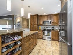 Beautiful & well-maintained home on quiet st. in Annieville. Spotless 4-bedroom, 2.5 bath home features spacious renovated kitchen with island bar, cabinetry with pullouts & updated appliances. Maple Hardwood flooring on main, gas fireplace, 3 bedrooms & sliding patio doors to 29'*10'4 covered deck, ideal for entertaining with family and friends. The basement features a huge living area and, a cozy bedroom with French doors looking out to a parklike, private backyard. Fabulous outdoor BAR/ kitchen area, completely covered & enclosed, ideal for large family parties. Wet bar has extensive cabinetry, bar fridge (gas hookup available). Other upgrades inc. roof (2011), furnace (2020), Hot water tank (2024), fence (2023) new deck railings & large storage rm.(Listing on Hold)