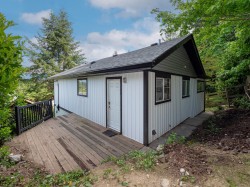 Charming 3-Bedroom Home in Lower Gibsons - Located in the sought-after "Bay Area" this home offers a blend of modern upgrades & coastal charm. Recent enhancements include a new roof (2024), all-new siding, and a brand-new IKEA kitchen. The residence features two distinct living areas, one with vaulted ceilings, hardwood floors, built-in bookcases, and a wood-burning insert. Enjoy peek-a-boo ocean views from the large, sunny front deck, which boasts new surfacing and hand-painted rails. Established landscaping adds to the property's appeal. Situated within easy walking distance to the marina, beaches, Public Market, and the array of shops, cafes, and restaurants that Lower Gibsons has to offer, this home presents a unique opportunity. Potential for suite conversion adds versatility.