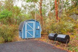 Tucked away in the Eastern Highlands, this inviting 2005 custom cedar home sits on nearly 4 ACRES of pristine woodland, offering a rare sense of privacy just minutes from everyday amenities. Surrounded by arbutus and Douglas fir forest, the property has been thoughtfully cared for to maintain its natural setting. Perched on a gentle rise above the trees, you’ll fall in love with sweeping outlooks and sunsets from the expansive SOUTH-FACING wrap-around deck! Inside, floor-to-ceiling windows overlook the forest and fill the main living spaces with natural light. Maple hardwood floors, vaulted ceilings with exposed beams, and a striking custom river-rock fireplace with an efficient wood insert create warmth and character throughout. The spacious primary bedroom features a 3-piece ensuite and a peaceful sitting area framed by floor-to-ceiling windows. With a HEAT PUMP and a new driveway, this very special property blends comfort, care, and natural beauty into a peaceful private retreat!