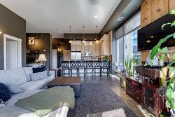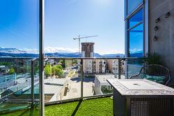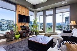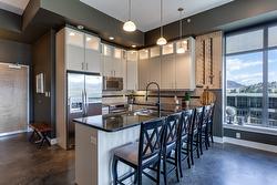 Welcome to elevated urban living in one of Kelowna’s most sought-after concrete high-rises. This bright and airy open-concept condo features soaring 11-foot ceilings and floor-to-ceiling windows that showcase panoramic city, mountain, and peek-a-boo views of the lake. Located on the quiet side of the building, the unique northeast exposure offers both morning sunrises and evening light. The interior blends modern style with industrial character, highlighted by exposed concrete and structural pillars that create a bold architectural statement. Thoughtful touches include a Murphy-Bed and workspace in the Den/Office area, a fitness room, secure bike storage, a storage locker, and one of the most desirable underground parking stalls in the building. Situated in the heart of Kelowna’s vibrant Cultural District, you’re steps to the waterfront, parks, dining, shopping, entertainment, and more. A rare opportunity to enjoy urban sophistication with nature and lifestyle at your doorstep. Don't miss out on your opportunity to own this amazing condo!