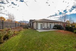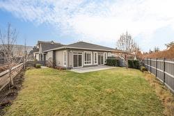 Welcome to the Brighton community! This beautifully maintained two-bedroom rancher with den is perfectly suited to families or those looking for a quality one level living home that offers comfort, convenience, and an unbeatable location. Situated just steps from the Greenway, H2O, the Public Library, and nearby parks, it also sits within proximity to excellent schools and has a wide range of recreation options. Inside, the open floor plan features a bright, spacious kitchen with modern white cabinets, a gas range, and a generous island that flows naturally into the dining area and sunlit living room. A cozy gas fireplace anchors the space, while a large sliding door opens to the fully fenced backyard backing onto peaceful Thompson Creek. With a gas BBQ line, room for entertaining, and a lawn for kids and pets, it’s an ideal living space. The den off the kitchen/dining room works perfectly as a home office or optional third bedroom. The primary suite offers large windows, a walk-through closet, and a luxurious 5-piece ensuite. A split floor plan places the second bedroom and bath at the front of the home—great for older children or guests. A double garage, two-car driveway, and a pet-friendly complex complete this family-friendly package.