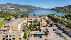 Imagine a lifestyle where relaxation and peace define your days, nestled within a laid-back community just moments from the beach, a lush park, and picturesque rail trails. Here is where you don't have to compromise on space or comfort. This unit is one of the largest, most spacious units in the building, it is perfectly positioned on the backside, ensuring an abundance of natural light floods every corner and offering stunning sunset views to cap off your evenings. Featuring two generously sized bedrooms (one with quality built in murphy bed and desk) , an open and airy layout, and not just one, but two private patios, this home is designed for both comfort and entertaining. Added conveniences include secure parking and a dedicated storage locker for the unit. This Exceptional unit is overlooking the beautiful Beasley Park and steps away from the tranquil Wood Lake, with its boat launches and marina, this location is truly unbeatable. Despite its peaceful ambiance, you're only minutes away from shopping, exquisite restaurants, and renowned wineries. Emerald Point isn't just a residence; it's a lifestyle. Enjoy the resort-like amenities including a fully-equipped gym, a relaxing sauna, a refreshing pool & hot tub , and a versatile meeting room with kitchen for entertaining larger crowds . This isn't just a home; it's the obvious choice for those seeking a blend of tranquility and convenience. Discover serene living in this exceptional corner unit at Emerald Point.