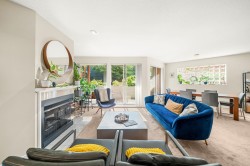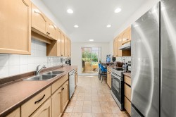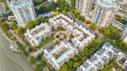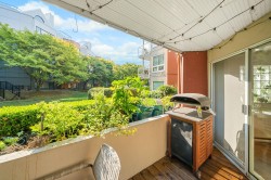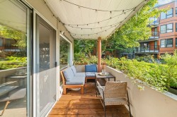 Welcome home to this rarely available 1,290 sq.ft. ground-level condo offering the perfect blend of comfort, convenience, and lifestyle. Enjoy serene garden views with a peek of the Fraser River from your private covered balcony—ideal for morning coffee or summer BBQs. Inside, you’ll find an extra-bright and airy layout with oversized windows, an open living & dining area that fits full-size furniture, and a cozy gas fireplace. The large kitchen features updated stainless steel appliances and has its own private balcony, while the spacious primary bedroom comes with a full ensuite. A second full bathroom, spacious laundry room with extra storage, and two lockers add even more convenience. Located just steps from the SkyTrain, shops, theatres, Pier Park, the Quay & Boardwalk.