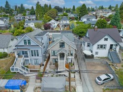 charming home has been totally and tastefully updated. This 2,600 sf of living space with 6 bdrms and 4 baths. The large elegant living room boasts renovated hw engineering floors, AC, with high quality sliding doors, brightening the open layout kitchen and dining room, and leading you to enjoy your private garden and EV parking. Smart home theater system which control lights/TV/blinds on the phone. Upstairs designed two master beds. One with two walk-in closets and built-in vanity. Basement has one bed LEGAL SUITE - a great mortgage helper and a studio for your own business. Enjoy A peaceful neighborhood. Just a short walk to school, parks, restaurants, Quayside, and public transportation.