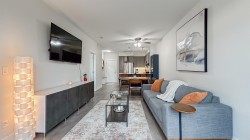 Welcome to Westbourne, where modern elegance meets comfort and tranquility! This bright, spacious 2-bed, 2-bath home offers high ceilings and an open-concept layout designed for relaxation and entertaining. The kitchen boasts stainless steel appliances, Quartz countertops, a gas stove, and ample storage. The expansive living areas flow seamlessly into an incredible 243 sqft covered deck, ideal for outdoor gatherings, taking in the serene views, or simply enjoying the peaceful ambiance. Thoughtful amenities include a lounge, playground, and more, this home truly has it all.Convenience is at your doorstep—close to everything you need while still offering a calm and serene retreat. This is perfect for families, downsizers, or investors alike. BOTH BEDROOM PICTURES ARE VIRTUALLY STAGED