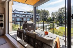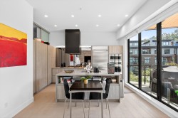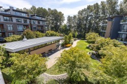 Welcome to this bright and spacious 1,043 sq. ft. loft-style home featuring dramatic 12-foot ceilings and a modern open-concept floor plan. Oversized windows flood the space with natural light, creating an airy and inviting atmosphere. The home offers 2 generously sized bedrooms and 2 full bathrooms, perfectly designed for comfort and functionality. A huge private balcony overlooks the serene courtyard with lush greenery and offers a peek-a-boo view of the Fraser River — ideal for relaxing. Enjoy direct courtyard access to the seawall, where you can stroll, jog, or cycle along the picturesque Fraser River trail. Nestled in a quiet, family-friendly neighborhood, this unique residence combines urban living with natural beauty. Perfect for those who value style, space, and tranquility.