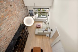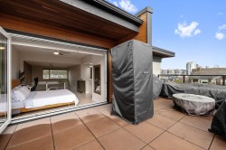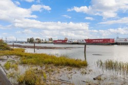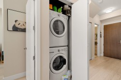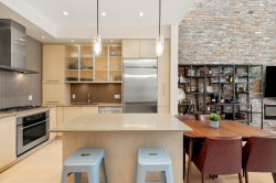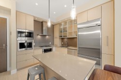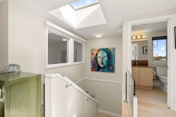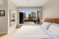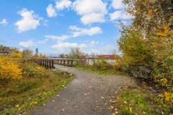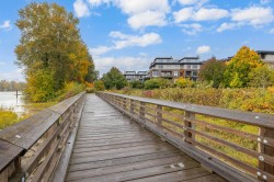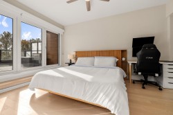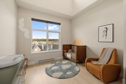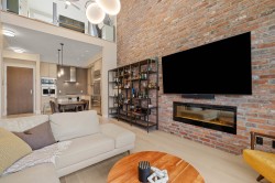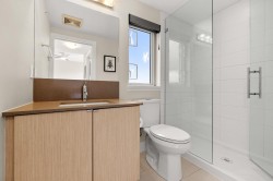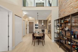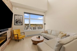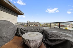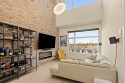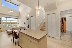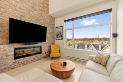 Loft style living in Queensborough? Welcome to Portage, and this uber chic 2 bed, 2 bath top floor loft-style home with just under 1100 sqft of living space and huge entertainer’s rooftop deck overlooking Annacis Channel. Experience the wow factor of a floor to ceiling brick feature wall, 18’ vaulted ceilings and views of the North from your living room, open concept kitchen w/ quartz counters, gas cook-top, SS appliances, and neutral colour palette. Main floor bedroom features high ceilings and walk-in closet w/ built-ins. Primary bedroom upstairs features 3pc ensuite w/heated floors, another walk in closet w/built-ins and bifold doors opening up to your 300sqft rooftop deck. With 2 parking and a storage locker, don’t wait! Close to Port Royal Park, Shopping, and elementary/middle schools