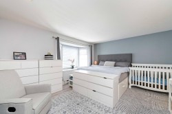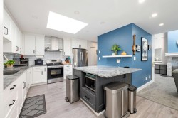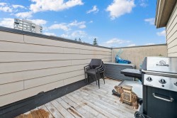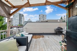 This bright 3-level, 1,730 sq ft home offers more space than many detached houses—perfect for young families! With entries on the 3rd and 4th floors, the smart layout features a central living area, bedrooms below, and a loft above that leads to a sunny rooftop deck with pergola. Vaulted ceilings and skylights fill the space with natural light, creating a breezy, open vibe. The fully renovated kitchen is ready for family meals and good times. Located in the heart of Uptown New West, you're steps from the new high school, transit, and across the street from Moody Park, steps from Royal city center with all of your shopping needs. Includes 2 parking spots, storage locker and loads of charm. You’re going to love living here!
