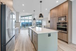 Welcome to sophisticated modern living with panoramic Okanagan views at The Ridge Penticton—a thoughtfully designed contemporary duplex offering over 2,000 sq. ft. of impeccably planned space across three luxurious levels, all seamlessly connected by a private elevator for ultimate convenience. Perched to capture breathtaking views of Skaha Lake and the Okanagan Valley, this home is a rare blend of modern elegance and everyday functionality. The top floor is a true showpiece—ideal for morning coffee or hosting stylish dinners against a stunning scenic backdrop. A versatile bedroom or den on this level provides flexibility to suit your lifestyle, whether as a guest suite, home office, or creative studio. The middle level features a serene primary retreat complete with a spa-inspired 5-piece ensuite with in-floor heating and a generous walk-in closet. An additional spacious bedroom with its own private 4-piece ensuite ensures comfort and privacy for family or guests. A well-appointed laundry room adds everyday practicality. On the ground level, enjoy your own private theatre room and powder room. Groceries are easy to bring in via level laneway access, and the 2-car tandem garage adds convenience. High-end finishes throughout include quartz countertops, luxury vinyl plank flooring, premium stainless steel appliances, and a curated modern lighting package. This is low-maintenance, high-style living at its finest. Embrace the Okanagan lifestyle in a home that truly has it all.