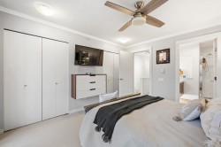 GOLF COURSE VIEWS! Stylish 2 bed townhome at Dominion North on the quiet side, backing directly onto Carnoustie Golf Course - A RARE OPPORTUNITY! Bright open main level with high ceilings, wide plank flooring and a sunken living room that flows to a private deck and fenced yard with fairway views. Sleek kitchen with white quartz counters, large island & great storage, plus a custom built-in hutch in the dining area. Upstairs, two generous sized bedrms including a primary suite with an amazing vantage of golf course, a custom closet and spa-like ensuite. Double tandem garage for parking & storage. Dominion North offers a gym, clubhouse, playground & visitor parking in a family friendly community close to Fremont Village, schools, parks & all amenities. OPEN SAT DEC 20, 12-1P