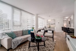 3 Bedroom + 3 Full Bathroom floorplan all on one level (two master bedrooms). No wasted space open floor plan, and each bedroom is paired with its own full bathroom. High end Bosch appliances. All rooms are individually Heat and A/C controlled. Enjoy yourself with the indoor pool, hot tub, sauna, gym and yoga studio. Or walk out to a private 2-acre park with water features and playground on the 6th floor. Walking distance and conveniently located in between Canada Line. 2025 - New carpets and newly painting throughout. Two Parking stalls (Tandem style).