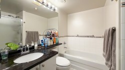 two-level penthouse corner unit in “Evergreens” featuring side-by-side parking. Enjoy stunning city and mountain views from this bright 3-bedroom home (2 bedrooms upstairs and 1 on the main level) with 2.5 bathrooms. The unit includes newer laminate flooring, granite countertops throughout, four balconies, and floor-to-ceiling windows that bring in abundant natural light. Unbeatable location—just minutes’ walk to the Canada Line, Richmond Public Market, major banks, and Richmond Centre.