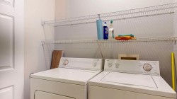 Immaculately cared for 2 bedroom with a flex/office room, 2 bathroom, ground level townhome overlooks a central courtyard. The open design for living, dining and kitchen areas feature a natural gas fireplace, sliding door to sunny patio & covered sitting area allowing plenty of light. Kitchen has beautiful appliances, tile accents and convenient for entertaining. Principal bedroom has a walk-thru closet to a 4 pce. bath w/incl. a walk-in tub & shower. Second bedroom includes a Murphy bed. Laundry - washer/dryer with some storage. Separate storage room. Easy rear access to covered parking. Check out the virtual tour!