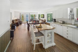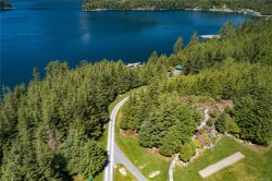 Goose Landing, rests on the ocean's edge, positioned to ensure each room enjoys uncompromised ocean views. Open plan ideal for entertaining with vaulted ceilings & exquisite stone & wood work. Chef's kitchen is bright & modern, punctuated with SS appliances & gleaming granite. Adjacent dining rm opens to great rm with striking stone encased dual sided FP shared with opposing family rm. Master features walk-in closet & lavish ensuite. 2 addtl bedrooms, 1 with ensuite complete the main residence. Surrounded by a wrap-around deck with covered sections for year-round enjoyment. Completely separate, 3 bed guest house spaced over 3 levels totaling 3,287sqft. Caretaker's cottage, staff accom, green houses & addtl out buildings all constructed on favoured locations. Resort style living on this 120 acre parcel completely self sustaining, off the grid property. Surrounding waters known for world class fishing. Access via private 94 ft dock w/boathouse or private helipad.