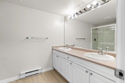 Enjoy privacy and sunshine in this updated ground-floor SOUTH facing unit at Villa Pacific, featuring 2 large bedrooms, 2 bathrooms, 2 parking and an expansive patio perfect 297 sqft patio. With bedrooms thoughtfully separated for privacy, the home feels bright, open and maintained well through the years with white cabinetry, stainless steel appliances, and a cozy gas fireplace. The primary bedroom offers a walk-in closet and ensuite large enough for any accessible needs. Pet-friendly and perfect for dog owners or garden enthusiasts. Located at the end of the cul-de-sac, Footsteps to Semiahmoo Trail, transit, shopping, and restaurants. Move in Anytime