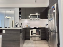Experience spacious living in the heart of Surrey at The Verve! This bright 1-Bed + Large Den (719sqft) features 9' ceilings, a modern kitchen with quartz counters, full-size stainless steel appliances, large island with breakfast bar, and under-cabinet lighting. The oversized bedroom includes his & her closets and dual-access bathroom. Enjoy in-suite laundry and a west-facing balcony perfect for relaxing or BBQs. Includes 1 underground parking & storage locker. Building amenities: gym, yoga, billiards lounge, guest suite, and secure entry. Steps to King George SkyTrain, SFU, Central City Mall, parks, hospitals & restaurants—must see! Open House: Sat. & Sun (Nov.15&16) 2-4pm.