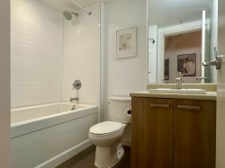 NEWLY renovated studio suite in "Ultra" at the heart of Surrey Centre, private and quiet, SOUTH facing. S/S appliances, quartz countertops, new laminate floor, brand new washer and dryer. 1 parking and 1 locker included. Steps to City Hall, SFU campus, Skytrain station, Centre City Mall, Walmart, T&T, Library, Recreation, close to Whalley Athletic Park & Holland Park. Amenities include gym, party room, meeting room, playground. The best opportunity for investment and 1st time buyers.
