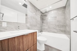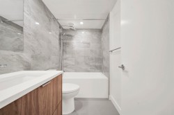 Welcome to Flamingo One, a new icon in Surrey Central by ITC, offering a bright one-bedroom residence with contemporary living features. Enjoy premium integrated appliances, elegant quartz countertops, sleek flat-panel cabinetry, and wide-plank flooring. Year-round comfort is ensured with air conditioning and a heat pump, complemented by an expansive covered balcony. The building boasts curated amenities, including a fireside lounge, BBQ terrace, social room with a full kitchen, hobby studio, state-of-the-art fitness center, theatre, children’s play area, and dog park. Ideally located just five minutes from Gateway SkyTrain, with shops nearby, and includes 1 parking space and 1 storage locker.