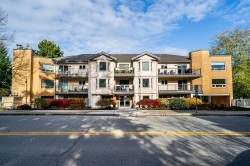 Welcome to The Courtyard! Large, 2-bed, 2-bath condo with secure basement parking and elevator access. Large master bedroom features an ensuite bath and double closets. Private balcony off the living room and master offers stunning views. Front door opens to an open-air courtyard with a fountain. In-suite laundry. Well-maintained building in a prime location near Semiahmoo Mall, transit, and Bakerview Park.