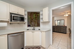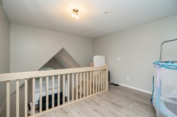 Beautifully spacious top-floor home featuring 2 bedrooms plus a loft large enough to serve as a third bedroom. Enjoy vaulted ceilings, skylights, generously sized rooms, a rooftop deck and a private balcony. Additional highlights include a gas fireplace, a large kitchen, spiral staircase, expansive windows, in-suite laundry room, and side-by-side parking. This well-maintained home is truly move-in ready, offering newer appliances, a 4-year-old hot water tank, radiant in-floor hot water heating, a gas fireplace, and impressive smart-control thermostats and lighting. The living room features new laminate flooring. Pets are welcome 2 cats or dogs. Conveniently located close to shopping, transit, the temple, and a variety of amenities. A truly impressive home.