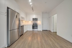Welcome to Kings Landing by Dawson + Sawyer, where modern design meets everyday comfort. This nearly new 2-bedroom+den, 2-bathroom condo offers a bright, open floor plan with 10-foot ceilings and quality finishes throughout. The sleek white kitchen is the heart of the home, featuring quartz countertops, a large island, and high-end stainless steel appliances, perfect for cooking and entertaining. The spacious primary bedroom includes a walk-in closet and ensuite, while the covered balcony provides a relaxing outdoor retreat. Complete with in-suite laundry, storage locker, and parking, with the option to add another spot. 8x8 Den can be easily converted to a 3rd bedroom. A beautifully maintained home in a sought-after community—don’t miss it!
