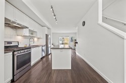 A lovely townhome located in the heart of South Surrey White Rock. This spectacular, spacious, bright and quiet Townhome has 4 beds and 3 baths with 2 covered parking lots. Split floor design on the main level with separate kitchen dining and living areas. 10‘ ceilings in living room & over-sized windows provide ample amounts of natural light. Central island kitchen, quartz counters, S/S appliances & gas range. 3 bedrooms including the Master bedroom on the upper level. 4th bedroom on ground level (no closet). South facing front yard and a large Balcony with BBQ outlet. Steps away from 350, 351, 321 and 375 bus stops. Walking distance to Sunnyside Park, shopping malls and schools.